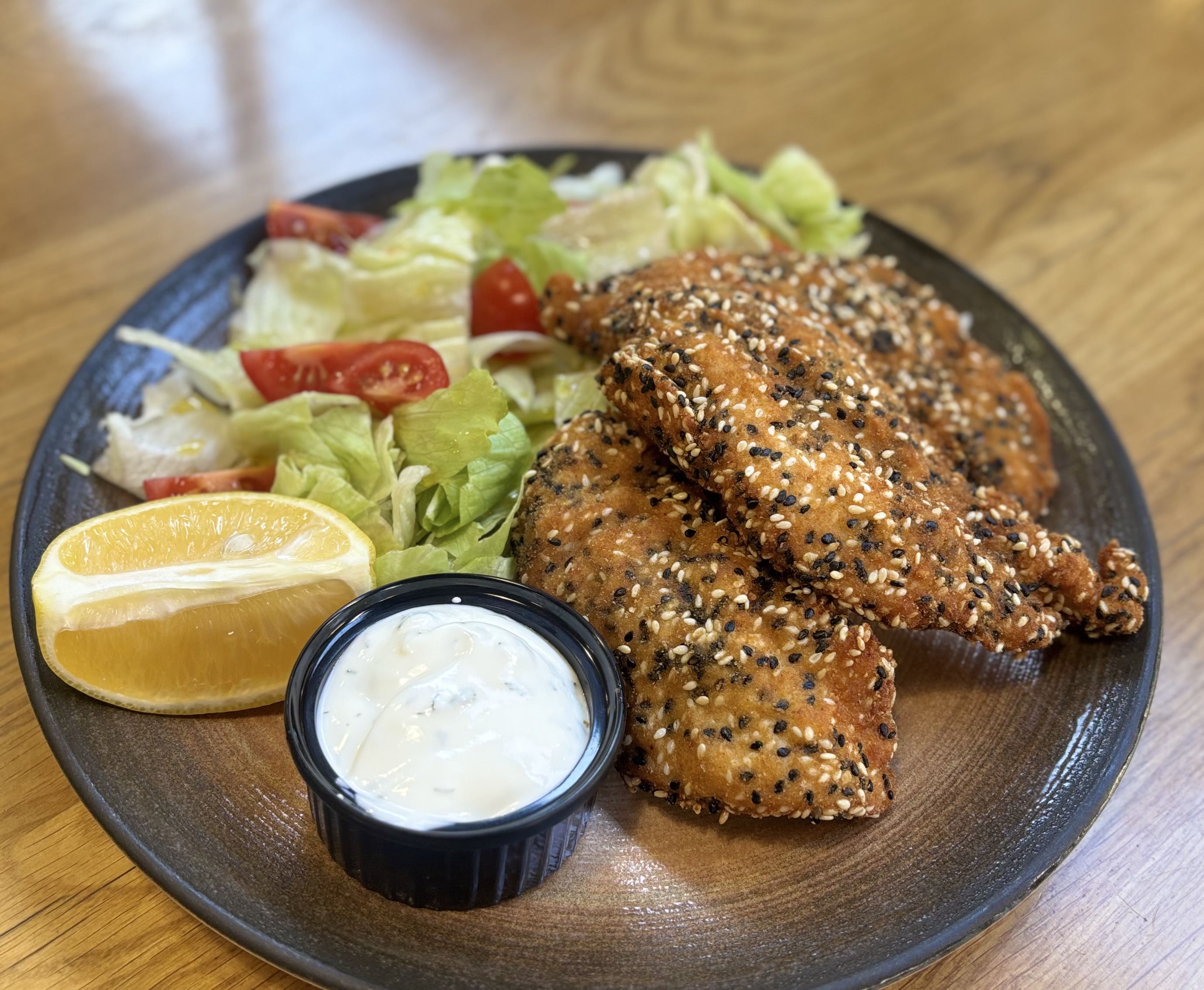 (ориз или елда, хрупкаво пилешко филе, авокадо, чери домат, краставица, яйце, сос цезар)