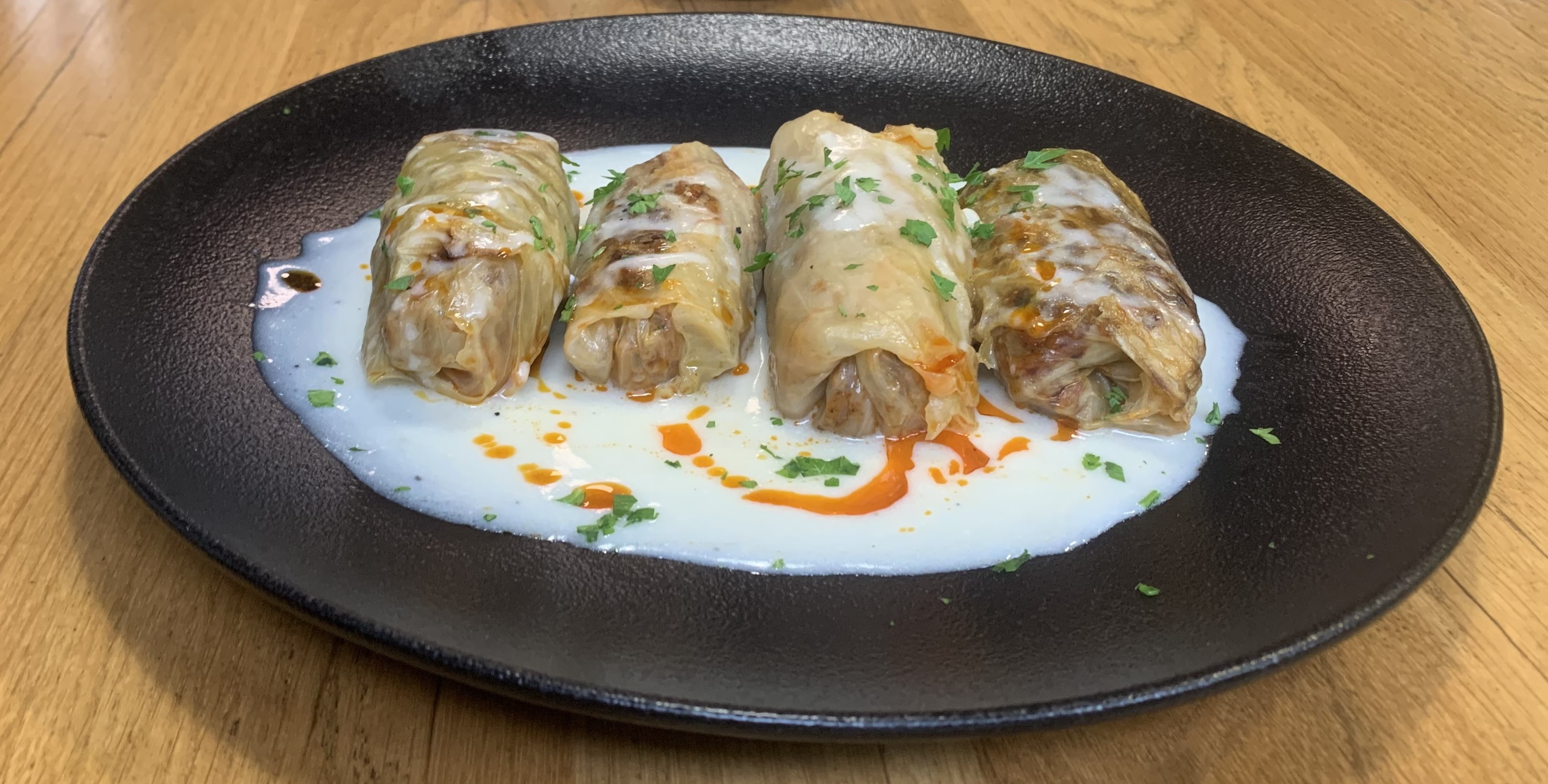 Зелеви сърми с ориз и телешка глава, и сос бешамел (1.7) (400гр.) – 6.60€ / 12.91лв.